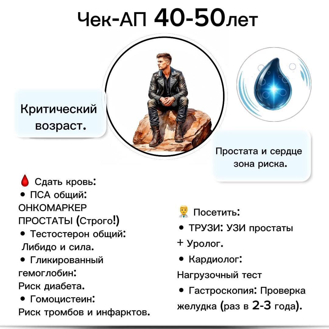 В карточке написано «СТРОГО!», и это не шутки. ПСА — это онкомаркер. Это единственный способ поймать проблемы с мужским здоровьем (простатой) на старте. Мужчины боятся этого как огня, но вы должны быть непреклонны: сдал — спи спокойно.