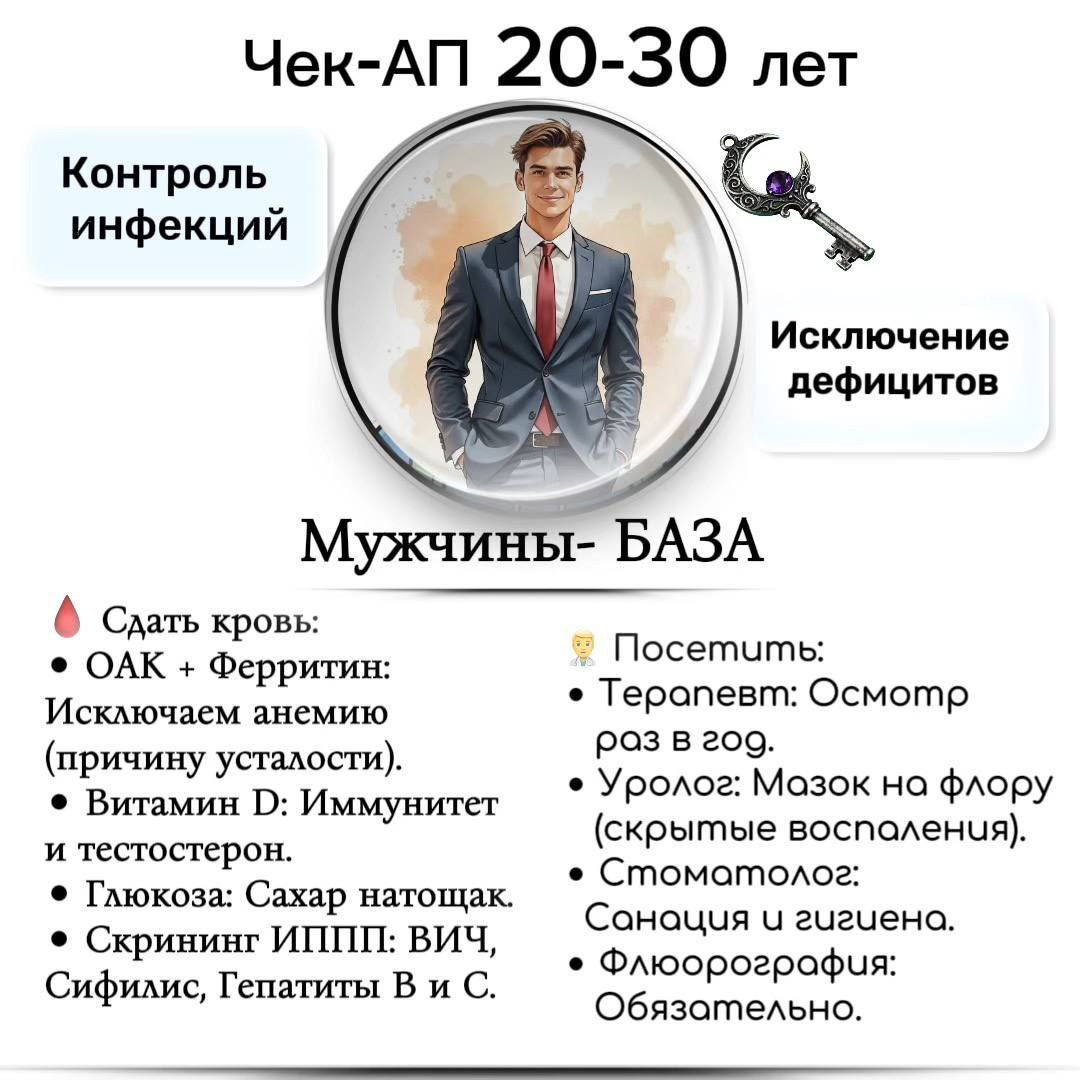 Мазок на флору — самое страшное слово для парней, но это гарантия, что нет скрытых воспалений. А зубы… ну вы сами знаете: лучше сейчас, чем потом за миллион.
